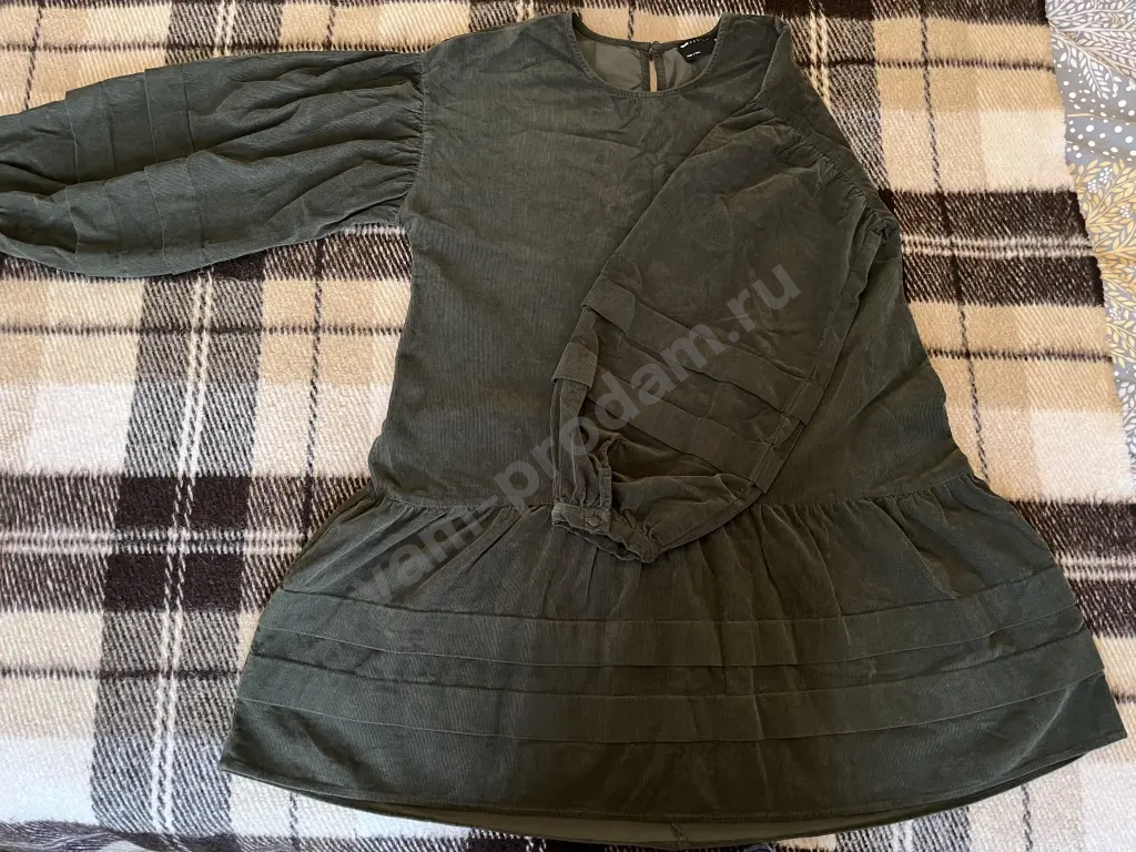 Вельветовое платье от Asos Design. Застегивается на одну пуговицу. Размер S, длина 89, длина рукавов - 57, ширина плеч - 54, обхват талии - 112. Платье оверсайз, с огромными рукавами.