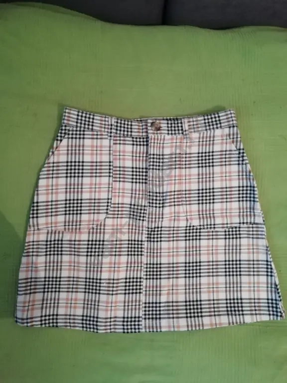 Прямая юбка в клетку с завышенной талией от бренда Monki. Юбка на одной пуговице и молнии, есть два кармана. Размер 38, по размерной сетке Monki относится к S размеру. Обхват талии - 76, Длина юбки - 45.