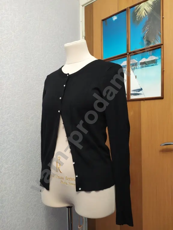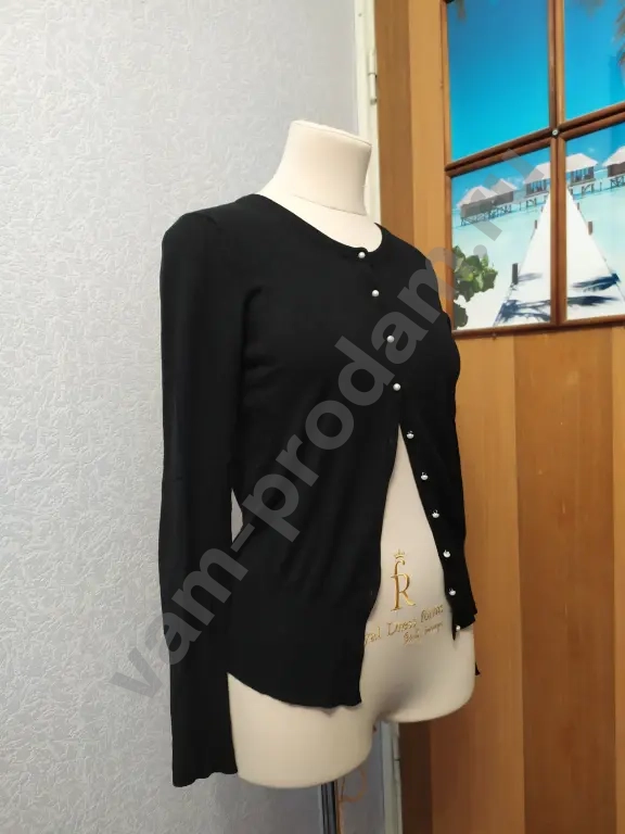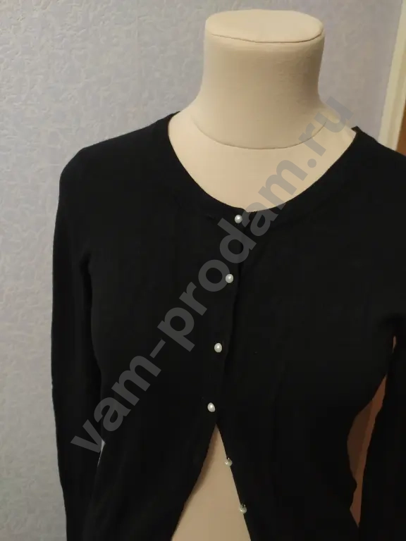 Кардиган трикотажный вязаный из вискозы с перламутровыми пуговицами.