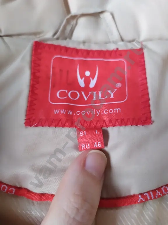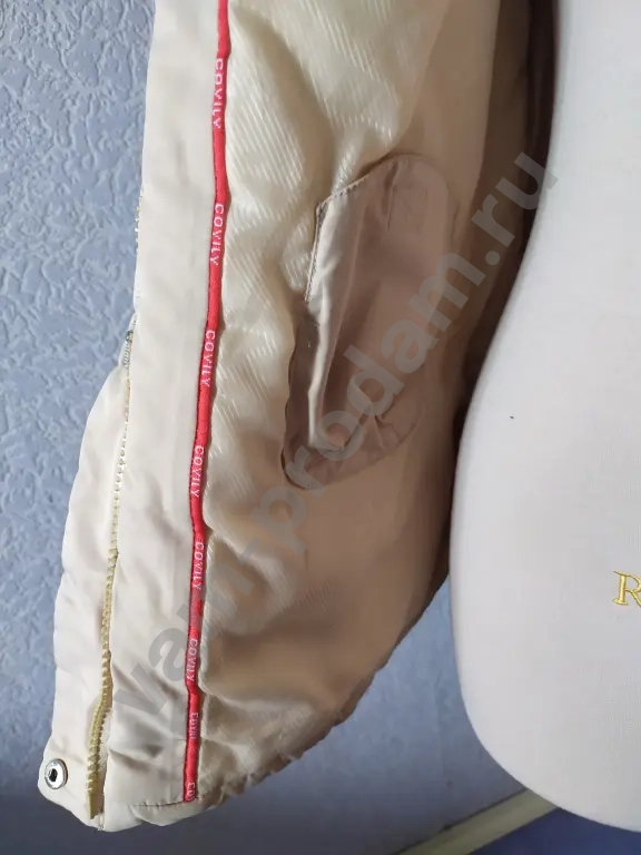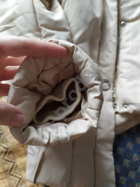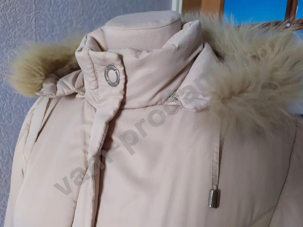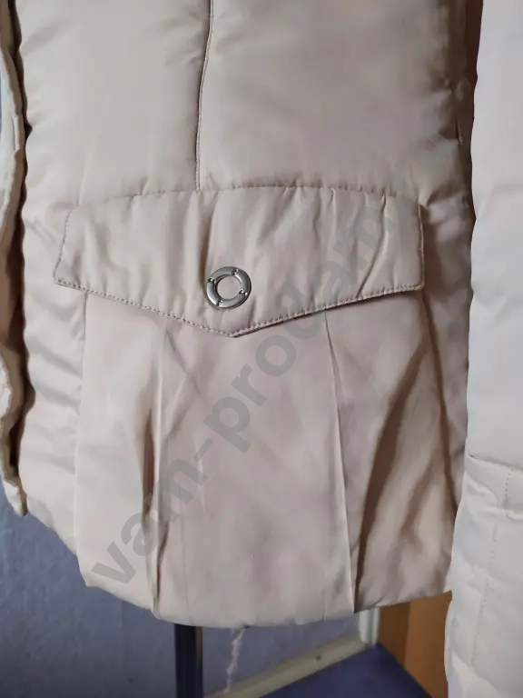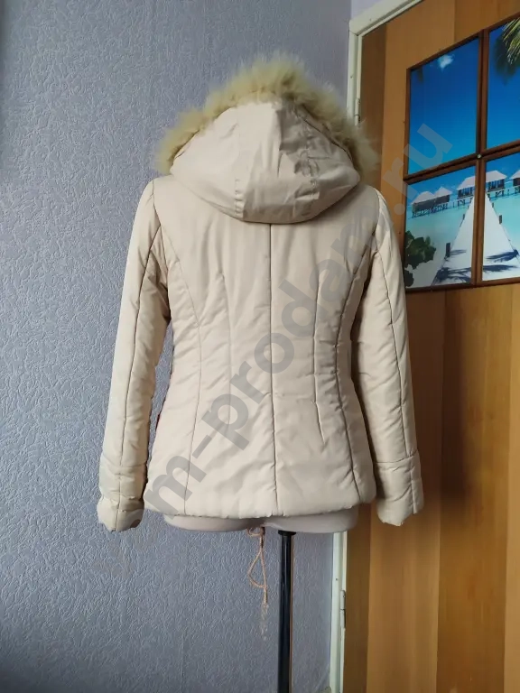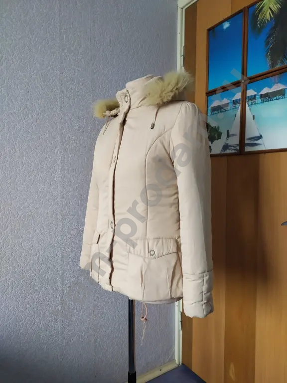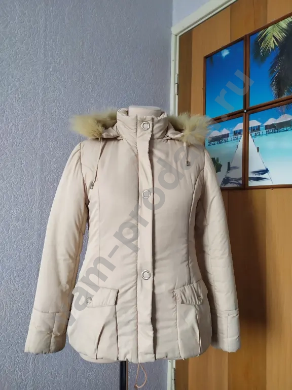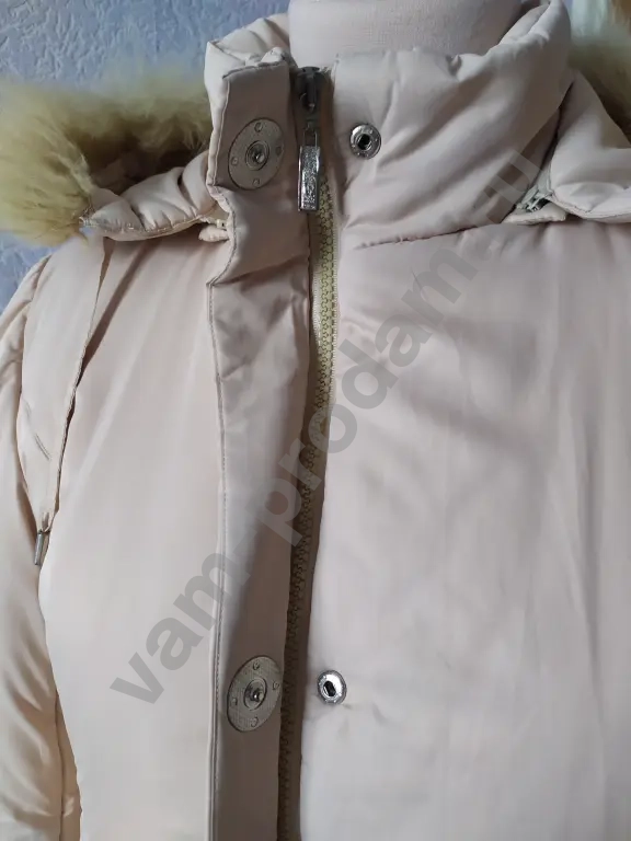 Пуховик женский бежевый на синтепоне с капюшоном.