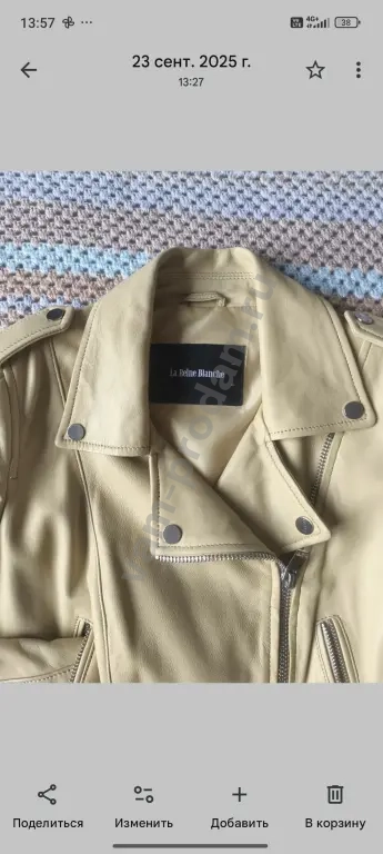 Продаю женскую косуху La Relne Balanche,укороченная, размер 42(S)/36. Цвет пастельно-желтый ( ближе как на первом фото). Натуральная кожа. Состояние отличное, нет затертостей и прочего. Надевала пару раз.