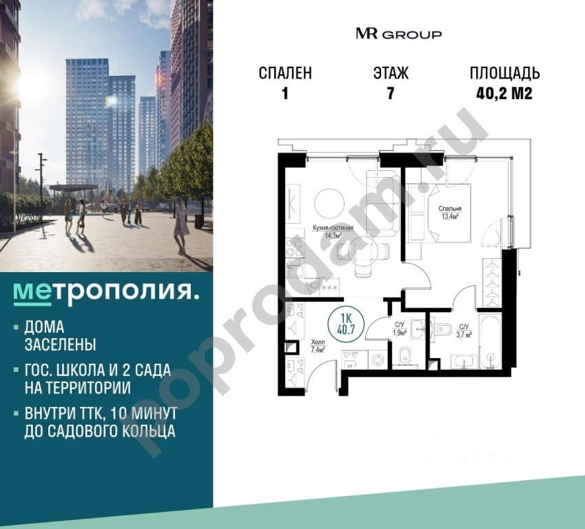 Продаются 1-комнатные апартаменты общей площадью 40,2 кв.м., на 7 этаже. Срок сдачи - сдан. 1 очередь застройки состоит из 7 сданных корпусов по 30 этажей. Метрополия это город городов. Коллекция лучших решений из самых прогрессивных мегаполисов планеты. Для тех, кому комфортно в любой точке мира. Все корпуса выполнены в своем индивидуальном стиле и получили свои названия в честь мировых метрополий. Эта концепция сохраняется и в дизайнерских лобби, которые выполнены в едином стиле с детальной проработкой декора и использованием характерных для каждого мегаполиса материалов. Высотные здания "Метрополии" образуют благоустроенное дворовое пространство на 4,6 га, которое украсят более 400 деревьев и несколько сотен кустарников, живописные цветочные клумбы и аккуратные газоны. На территории расположатся 2 частных и один государственный детский сад, а также государственная школа. Территория комплекса продумана до мелочей, сформированы несколько тематических зон, предусмотрено место для спокойного отдыха с кафе, зона активности для сторонников здорового образа жизни с тренажерами для воркаута и площадкой для стритбола и петанка. Детские площадки разделены по возрастам от малышей до подростков, на всех площадках используется оборудование европейского производителя, уложено резиновое покрытие, которое позволяет детям играть в полной безопасности. Современные инженерные решения не оставят вас равнодушными: - Скоростные и бесшумные лифты; - Пожарная и охранная сигнализация; - Система навигации с ночной подсветкой по всей территории комплекса; - Wi-Fi-покрытие в зоне лобби и по всей территории комплекса; - Система распознавания лиц для доступа на территорию ЖК; - Система контроля и учета энергоресурсов; - Контроль доступа на парковку по системе считывания номеров.