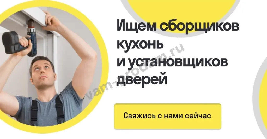 Установщики межкомнатных дверей и сборщики кухонь, опыт от 1 года, свои инструменты, смартфон для работы.