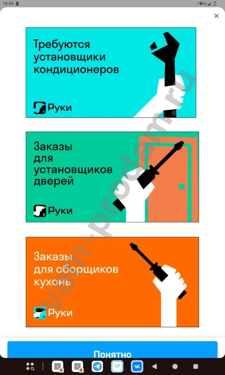 Доступ ко всей базе заказов по отделочным работам — выравниванию и покраске стен, поклейке обоев, укладке плитки, облицовке стен гипсокартоном и другим видам работ.