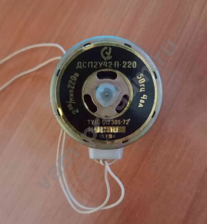 Рабочий электродвигатель ДСМ2У42-П-220, правого вращения, 2 оборота в минуту, 220 В, 50 гц 4 Вт, ТУ16•512 309-72, номерной:1804 СССР, 1978 год