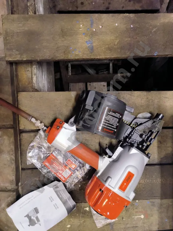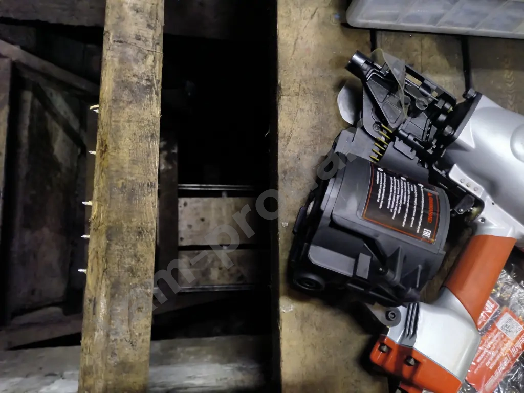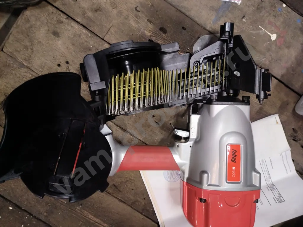 Новый. Не эксплуатировался. На фото гвозди 60 - забивает отлично.