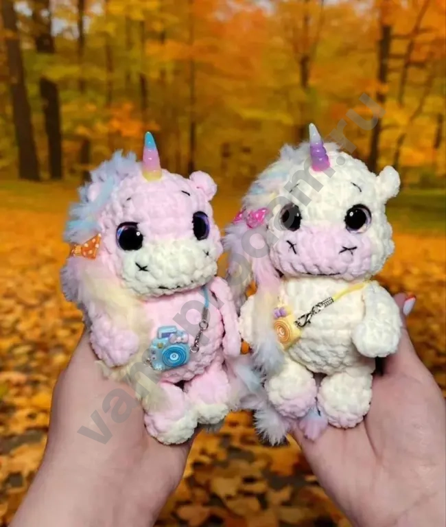 Выполнена из плюшевой пряжи, не вызывает аллергии. Глаза на безопасном креплении, не выпадут во время активных игр ребёнка.