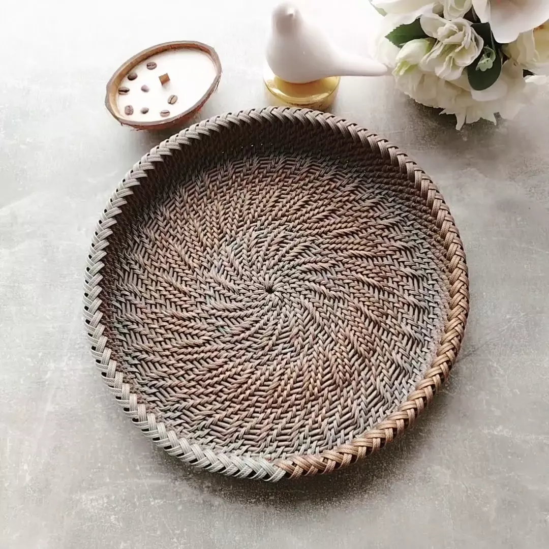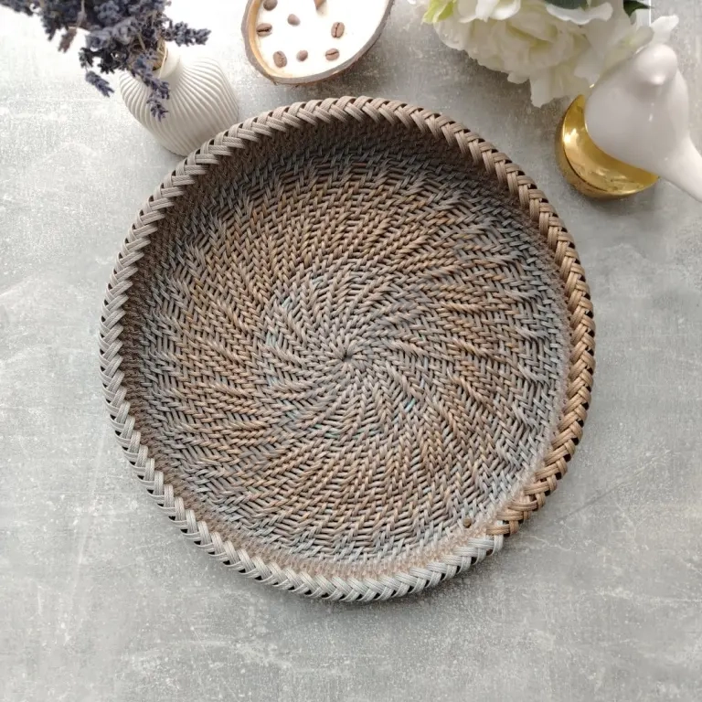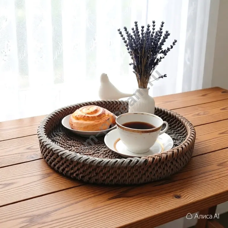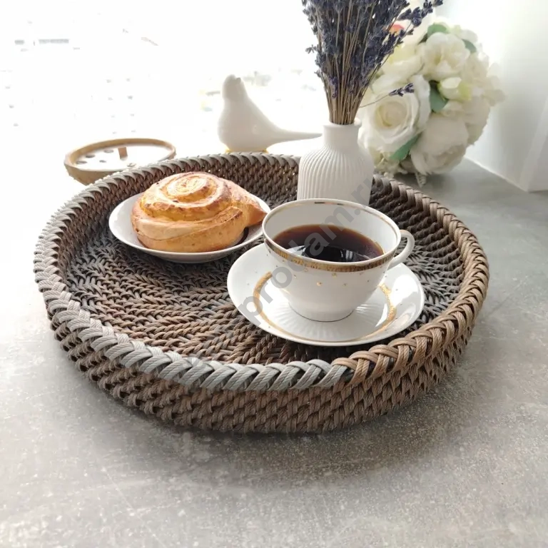 Плетеный поднос из ротанга — стильный элемент декора для вашего дома.