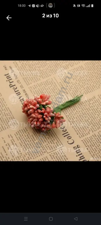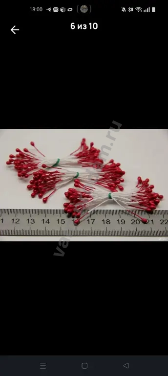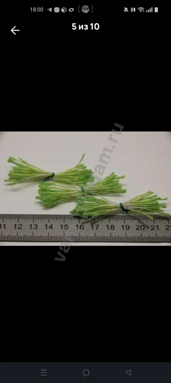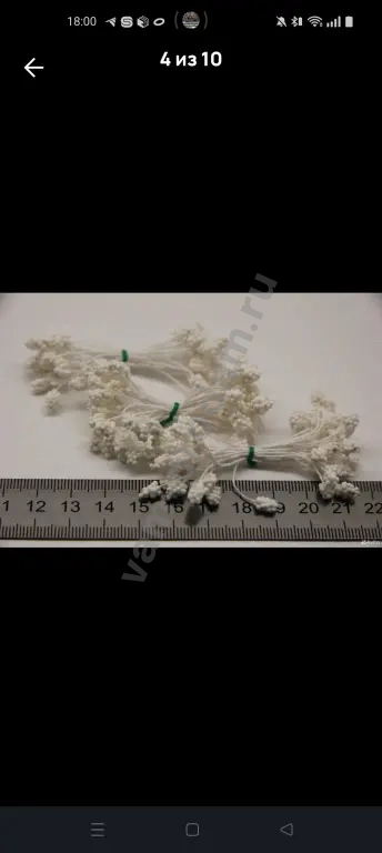 Длина нити 6 см. Длина пыльника 6 мм. Ширина пыльника 3-4 мм. В одной связке 25 нитей. Всего 50 тычинок. Цена указана за одну связку.