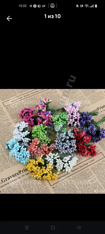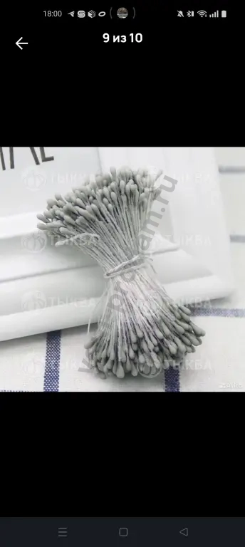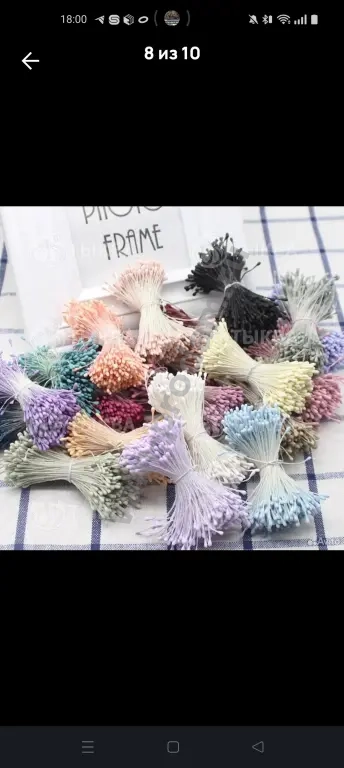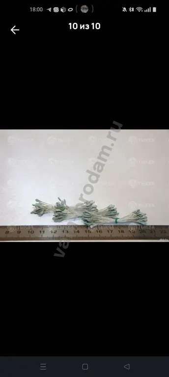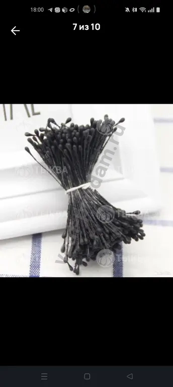Длина нити 6 см. Длина пыльника 6 мм. Ширина пыльника 2 мм. В одной связке 25 нитей. Всего 50 тычинок. Цена указана за одну связку.