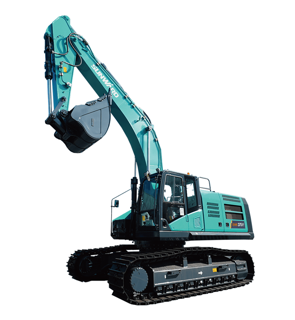 Тяжёлый экскаватор SWE375F: Isuzu 212 кВт, гидравлика SUNWARD и топовые комплектующие, стрела и рукоять усилены, ковш 1,8 м?, модернизированная ходовая — надёжность и экономия топлива.