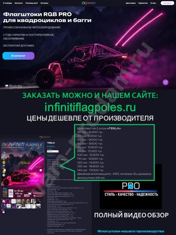 INFINITI - единственный производитель светодиодных флагштоков RGB PRO в России, для внедорожной мото техники, адаптированных для эксплуатации в условиях Российского климата.