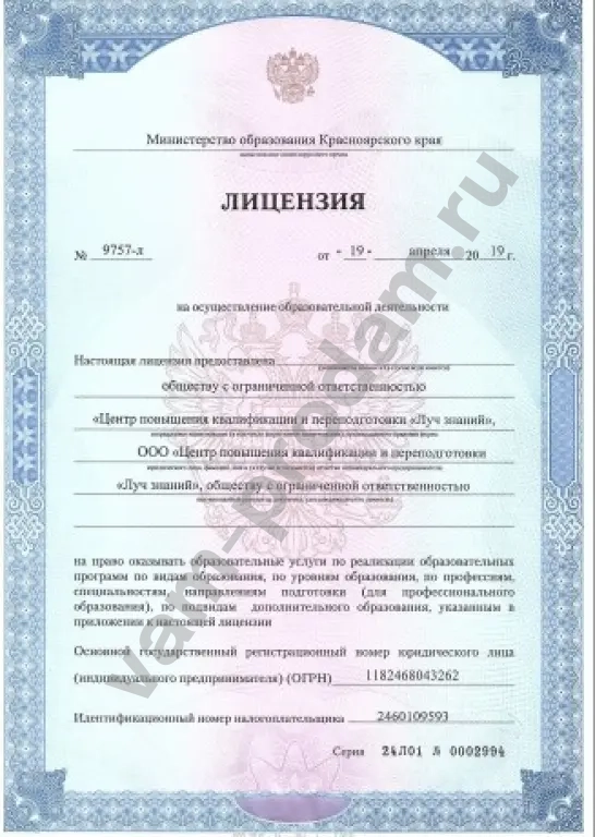Лицензия на образовательную деятельность(данные о документах вносим в Федеральный реестр)