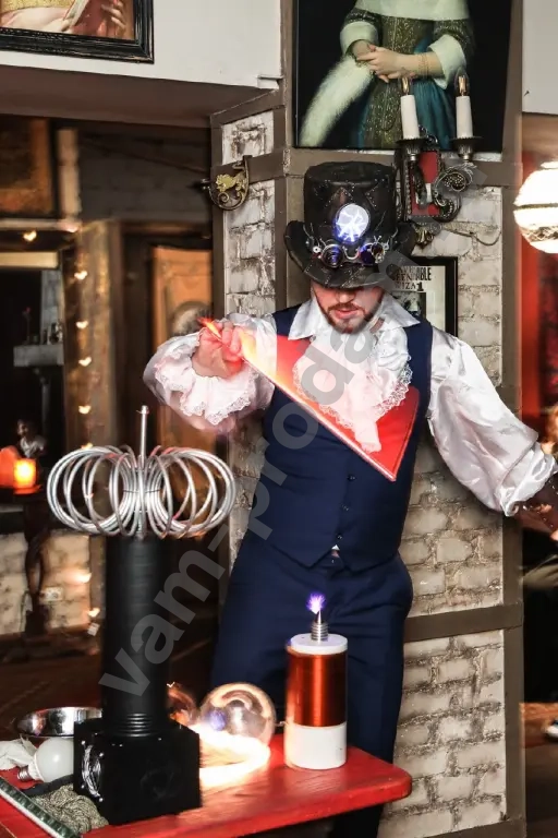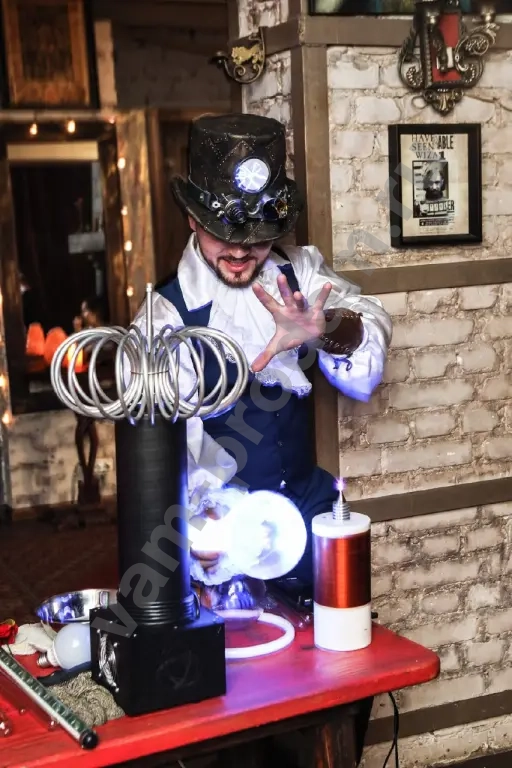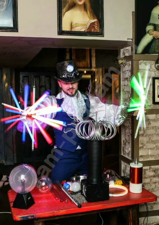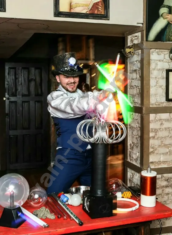Хотите удивить гостей незабываемым зрелищем? Приглашаем вас в мир научных чудес с настоящим Тесла‑шоу! Гигантские электрические разряды, танцующие молнии и фантастические эксперименты — всё это ждёт вас и ваших гостей.