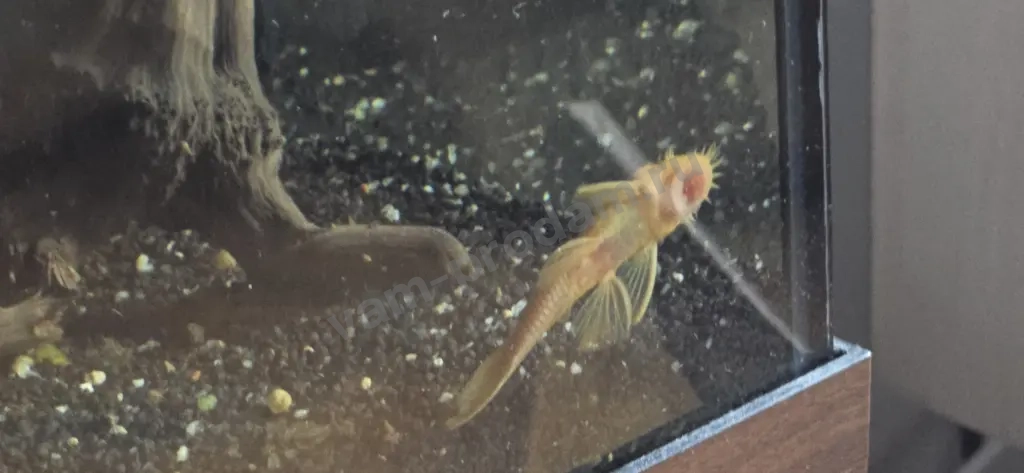 Продаю ярких и здоровых анциструсов альбиносов (красивый золотистый окрас, красные глаза). Рыбки неприхотливые, активные, отлично чистят стенки аквариума и коряги.