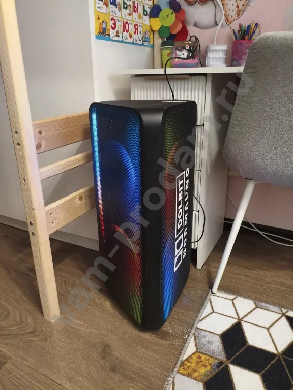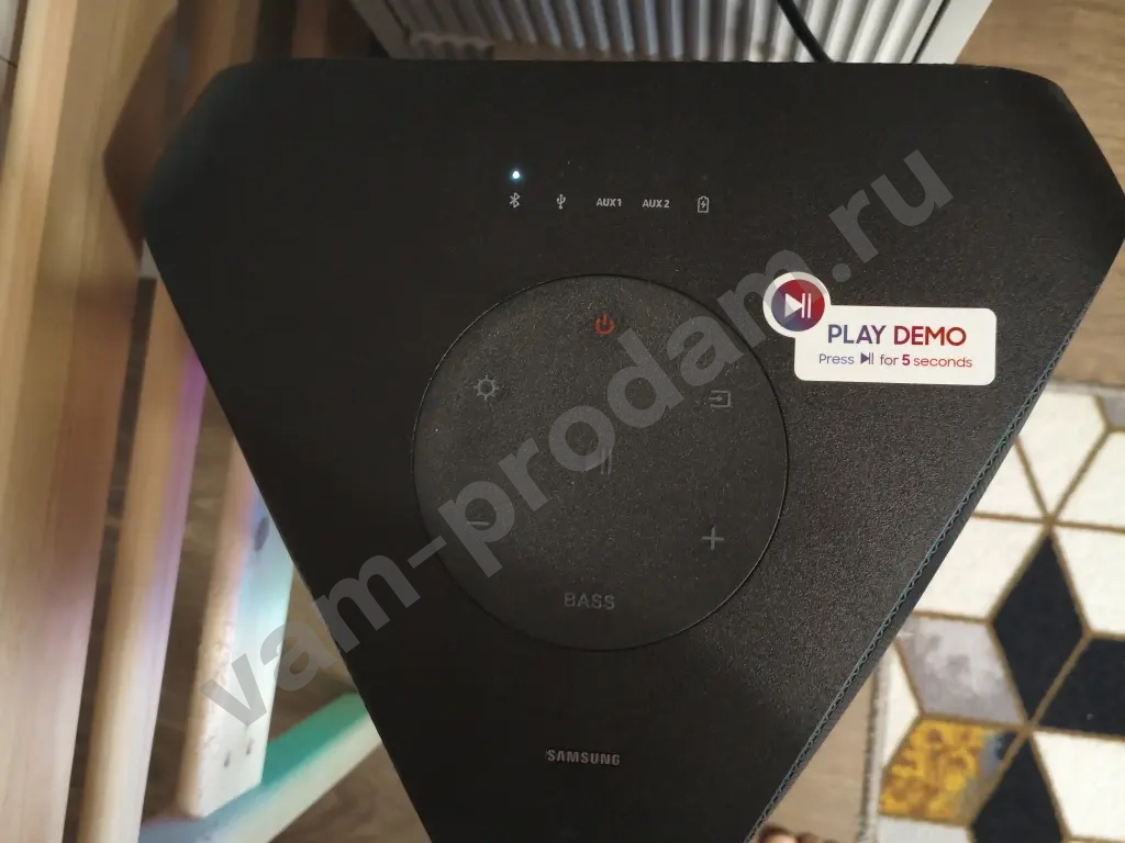 оригинальная колонка самсунг!играет очень хорошо!очень хороший бас!несколько режимов подсветки в такт музыке!работает как от сети так и от аккумулятора.