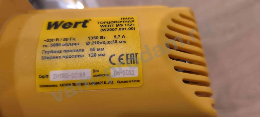 Пила торцовочная настольная WERT 194591 MS 1321, 210 мм.