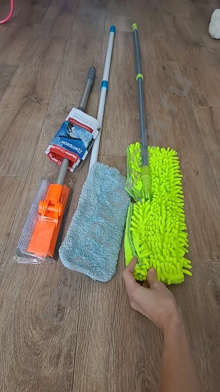 ✅️ Швабра двусторонняя серо-зеленая гладкая микрофибра и длинный ворс. Длина ручки регулируется - телескопическая. Насадки съемные. Новая