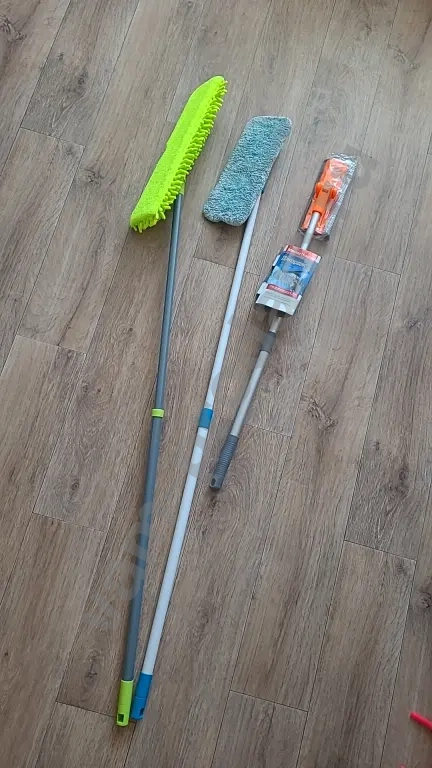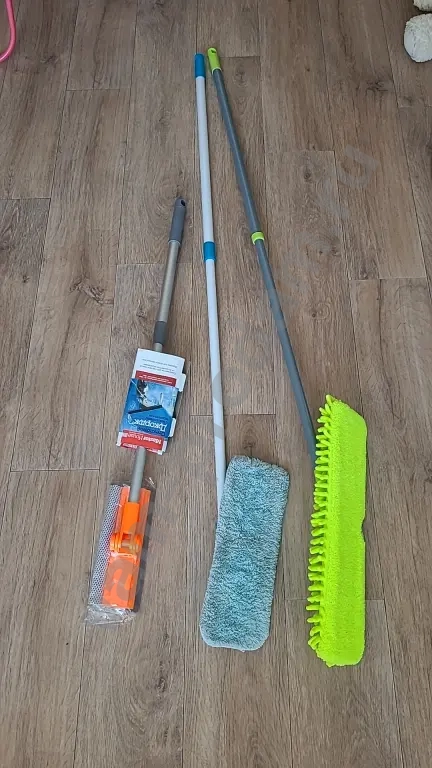 ✅️ Швабра серо-голубая короткий ворс. Ручка телескопическая - длина ручки регулируется. Насадка съёмная. Новая