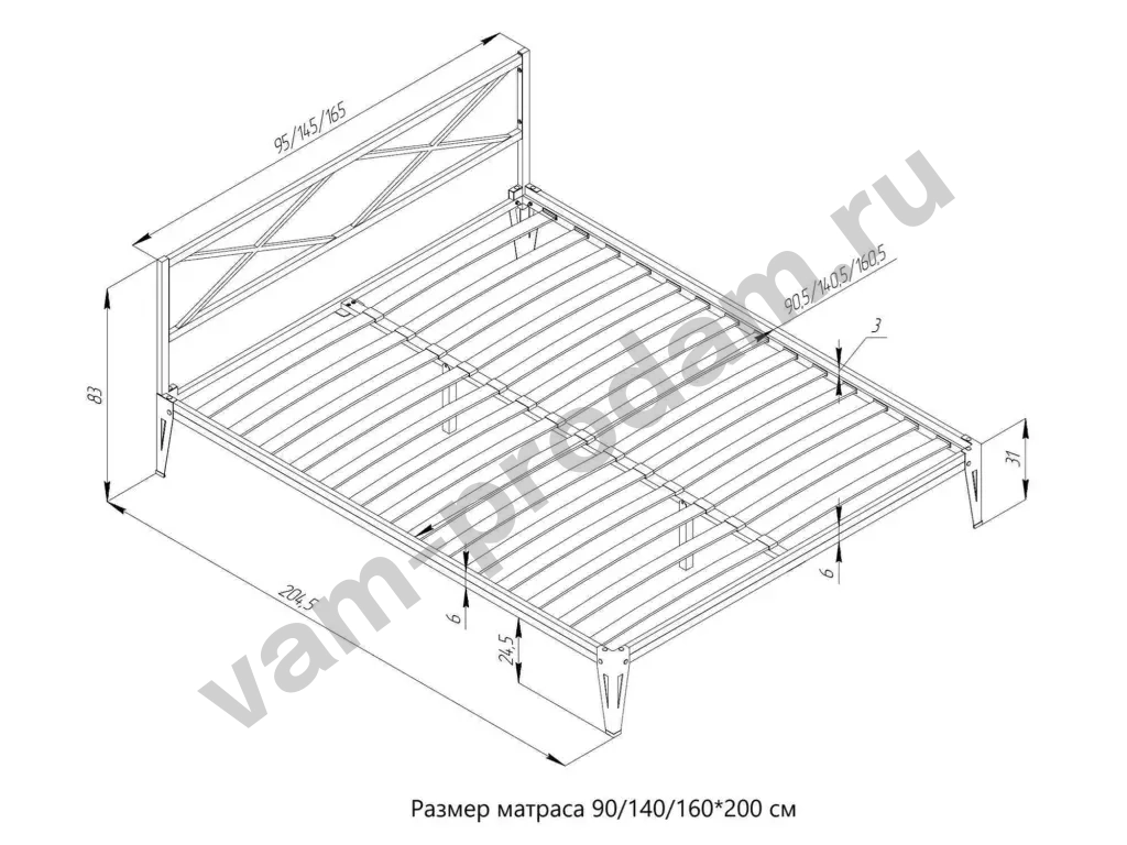 По центру кровати расположены дополнительные опоры (2шт), для увеличения жёсткости конструкции.