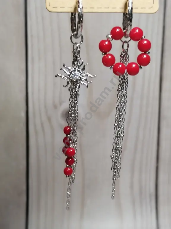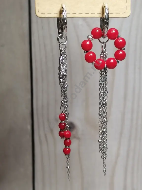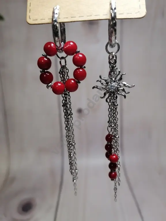 Откройте для себя магию асимметрии с этими уникальными серьгами! Сочетание серебристого блеска и насыщенного красного коралла создаёт эффектный, запоминающийся образ.