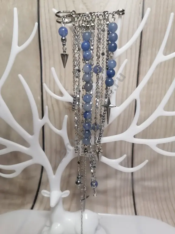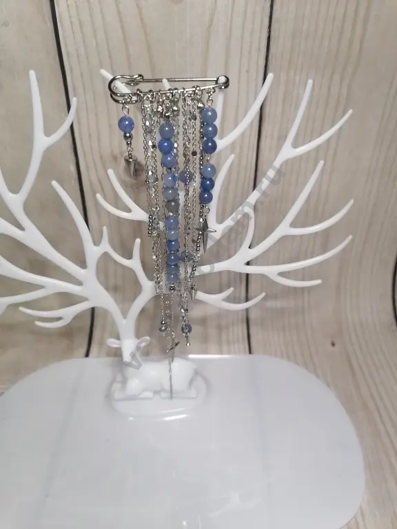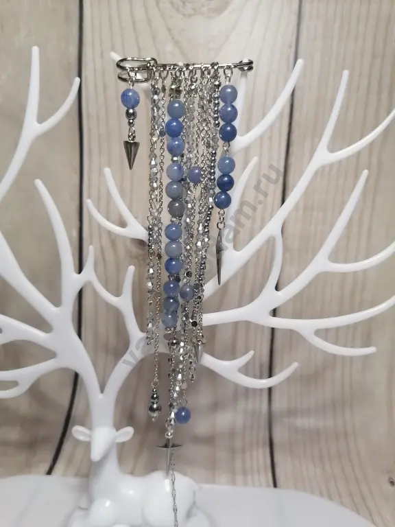 Нежная брошь-булавка: аквамарин и хрустальные рондели создают воздушный образ. Аквамарин известен своей способностью успокаивать и приносить внутреннюю гармонию.