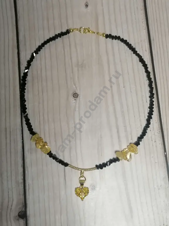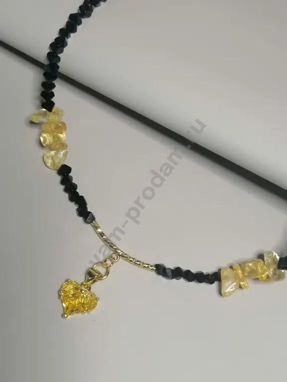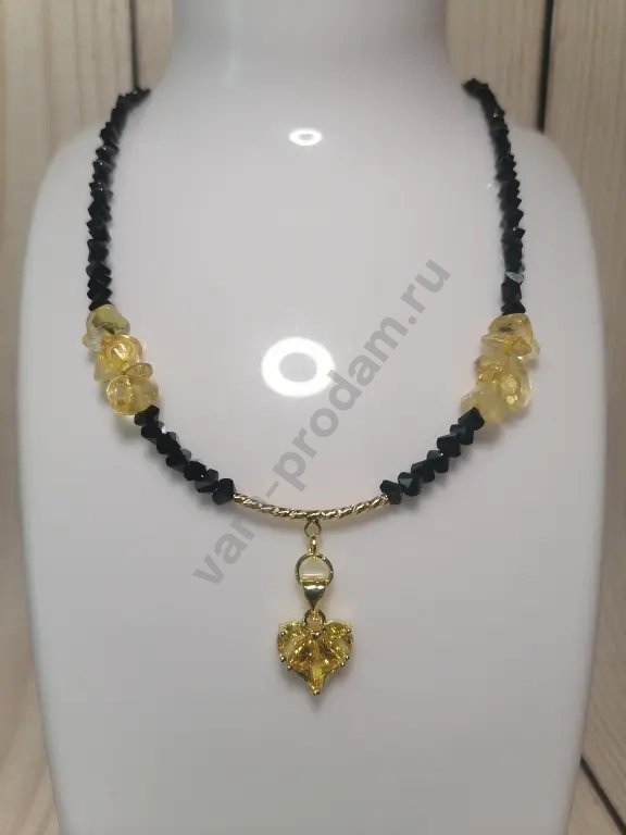 Эксклюзивный чокер: сочетание чёрного алмазного стекла и тёплого оттенка цитрина. Центральным акцентом служит подвеска в форме сердца.