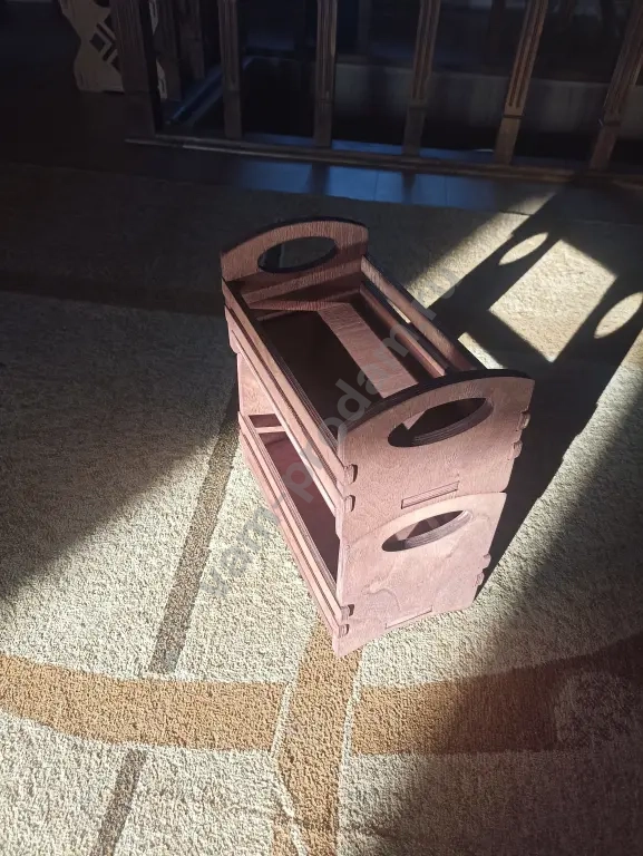 декоративный ящик из фанеры. покрытие морилкой. типа стеллаж этажерка. небольшой компактный. удобно для специй на кухню, можно под книжки и тетрадки. 2 секции размер ШВГ 320х345х180мм.