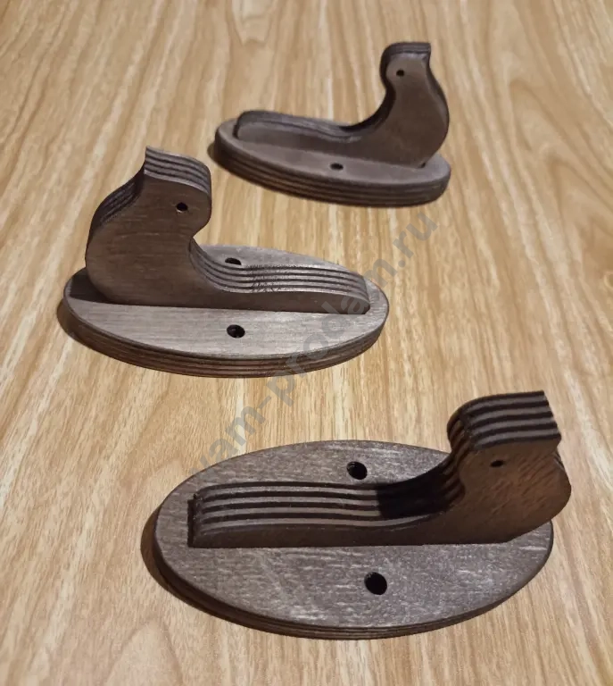 крючки птички декор из дерева настенные изготовленны из фанеры толщиной 12мм покрыта морилкой. с отверстиями для крепления. крепеж в комплект не входит.размер ШВГ 11Х55Х65см. цена за комплект 3шт