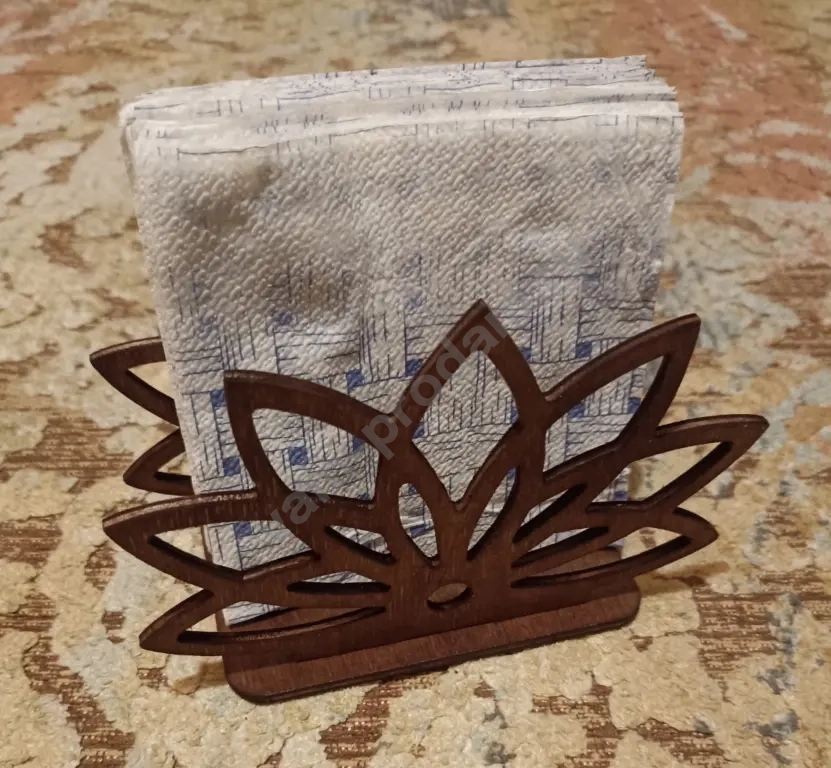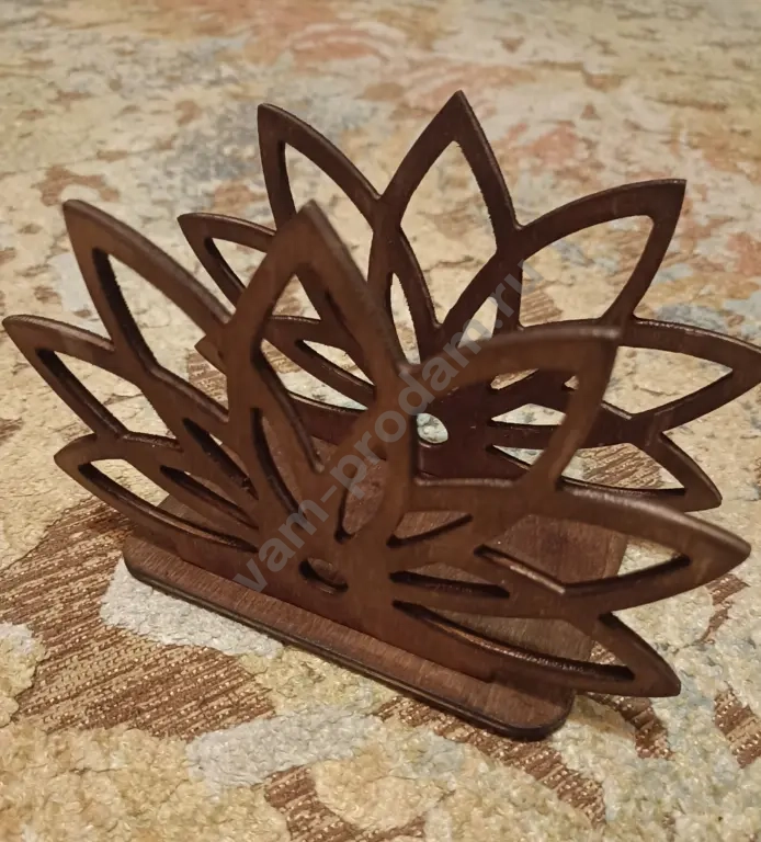 салфетница из фанеры покрыта морилкой, форма цветок лотоса.