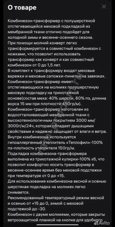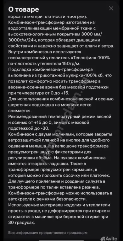 Зимой с подкладом выдерживает температуру до -30 градусов, а весеой-осенью без подклада от 0 до +15 градусов.