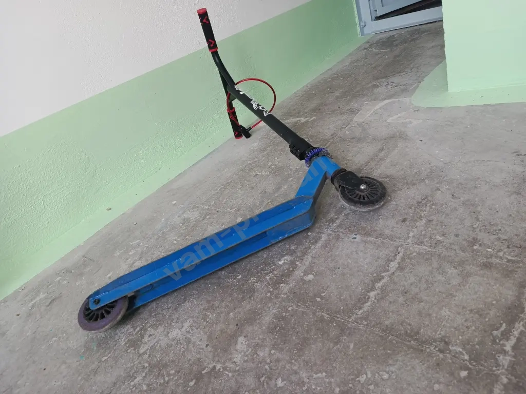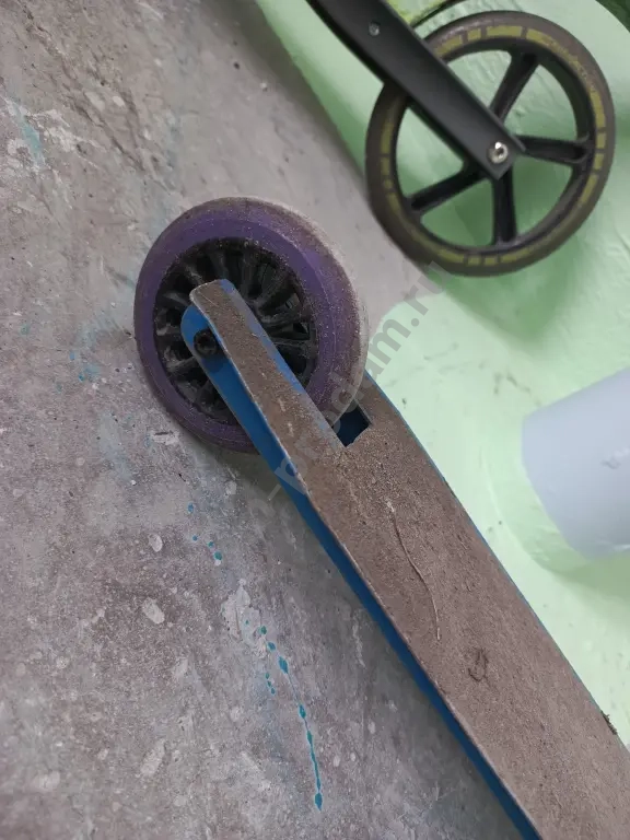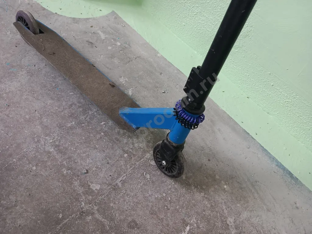 самокат в полном порядке зажим целый.Самокат в натуральном цвете не чего не красил.Самокат прочный подойдёт для всех возрастов
