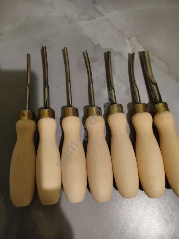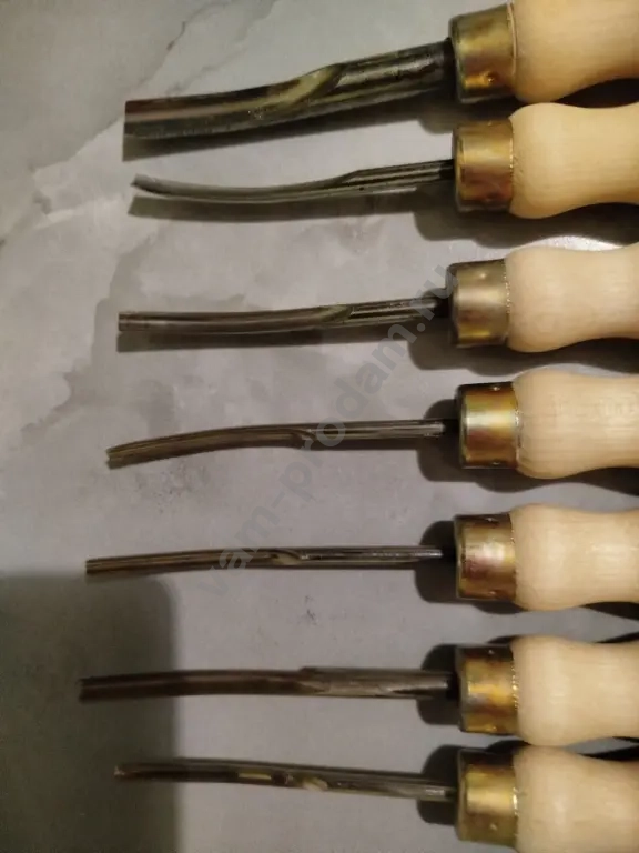 Продам набор очень качественных резцов по дереву из стали р18,набор из 6 шт,полуклюкарзочки для мелкой работы,полукруглые профиля ,размеры 3мм,4мм,5.5мм,8мм,10мм,и один уголок 5.5мм,твердость закалки примерно от 60 и до 63 по Роквеллу,инструмент для работы как по мягким ,так и по твердым породам дерева.
