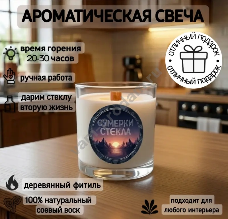 * 🌿 **100% натуральный соевый воск:** чистое горение без вредных испарений.