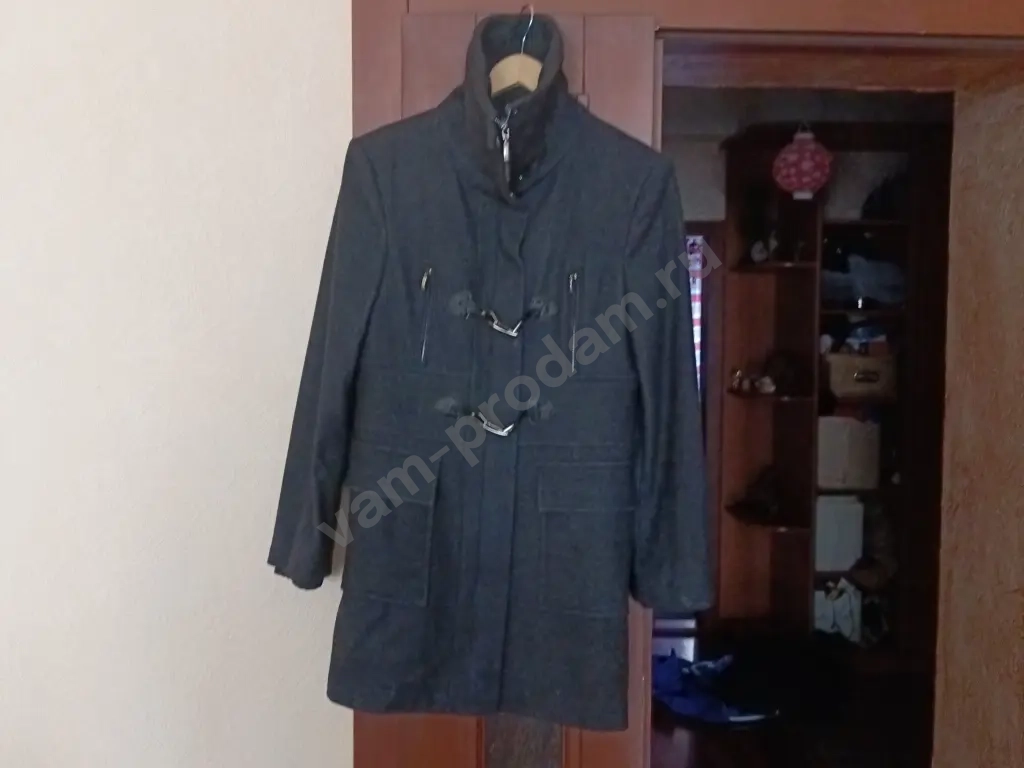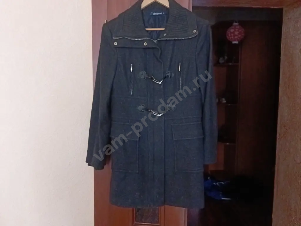 Продаётся чёрное пальто из шерсти, размер 42 - 44. Изготовлено в Италии компанией Blue Sand. Пальто с воротником, подходит для прохладной погоды. Состояние отличное. Замеры: длина рукава от плеча - 60 см, длина изделия по спинке - 79 см.