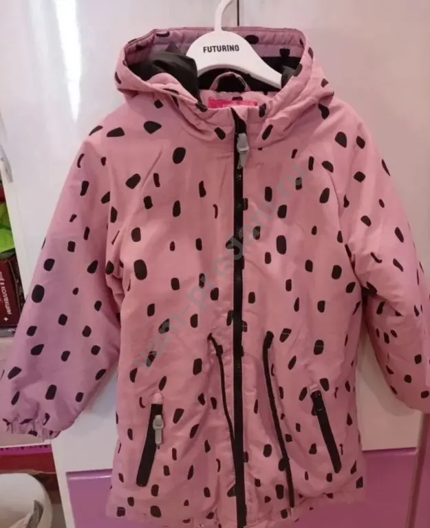 Куртка удлинённая на рост 118-122, с капюшоном, на рукавах резинка, пояс утягивпеться чтоб не продувало фирма futurine .В хорошем состоянии.