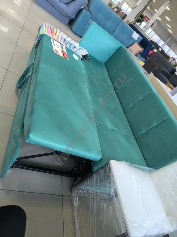 продам новый диван для кухни или хоть куда прямой с подлокотником левый со спальным местом ,габариты 1 ,80*65*80 в бирюзовом цвете,не промятый,механизм металлический в норме,спальное место 1м *1,80