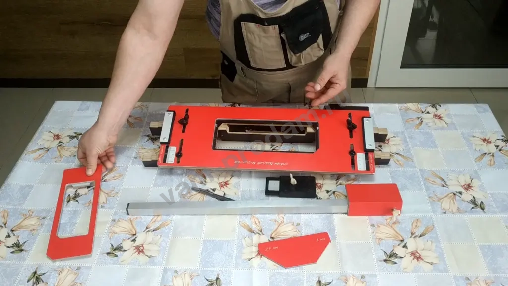 Комплект шаблона для врезки петель и замков включает в себя: