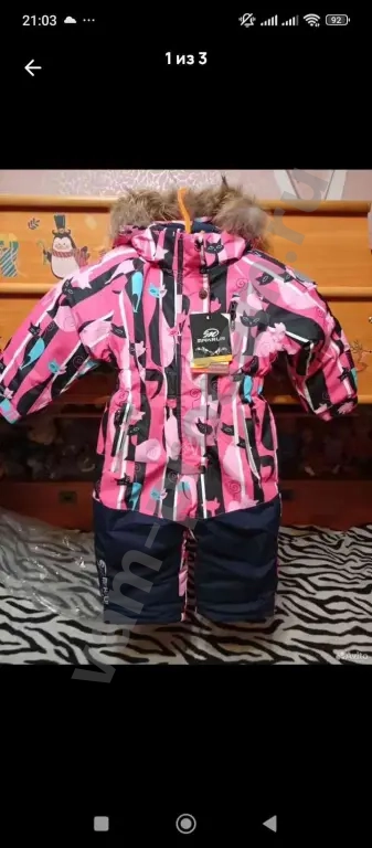 Новый,розовый размер104. качество отличное. температура-30 . Длина от горловины до низа 89 см, длина рукава от горловины до низа 50 см. Очень яркий и красочный комбинезон. Вашей дочери будет в нём удобно и комфортно. Будет очень яркая. Мех отстёгивается, натуральный, при носке распушиться
