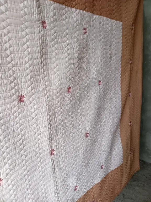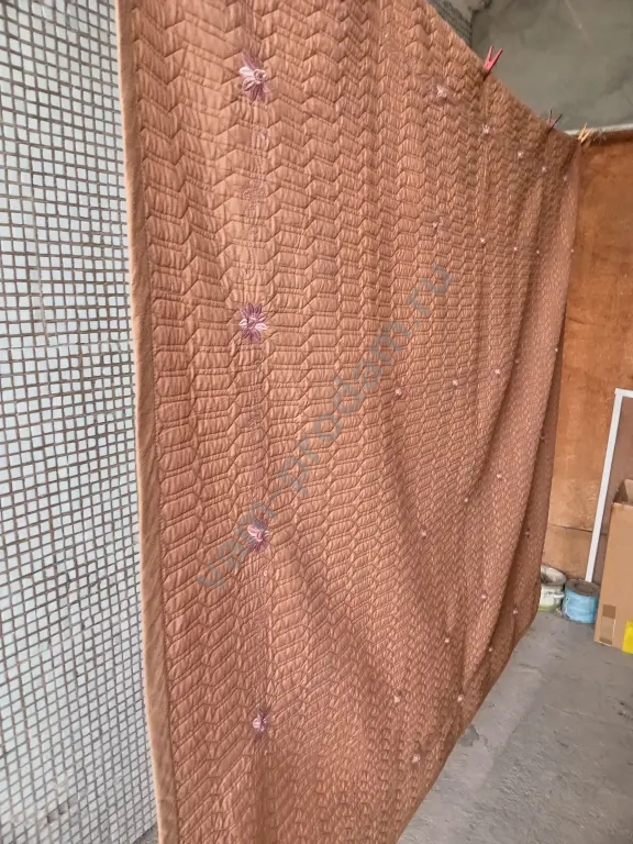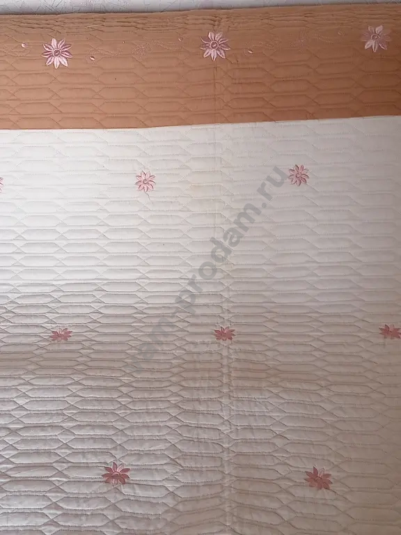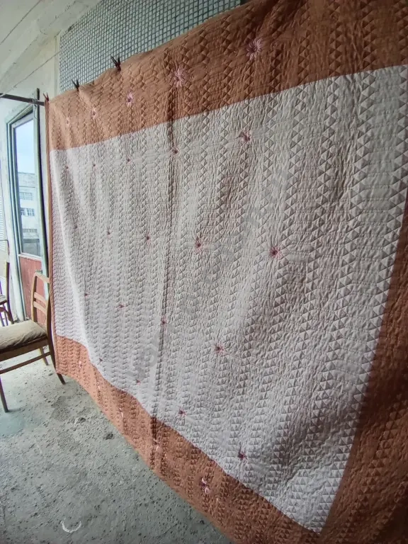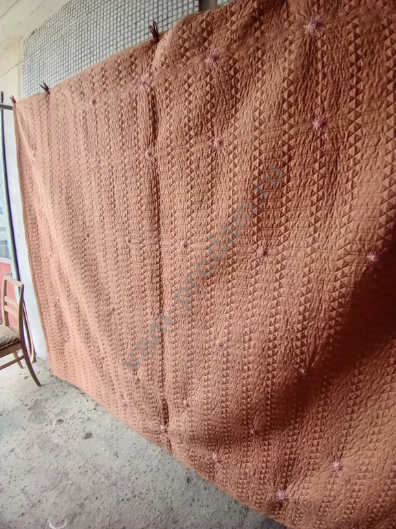 Покрывало двухстороннее, стеганое времен СССР, кофейного цвета, лен+хлопок, с цветами. Почти не б/у.