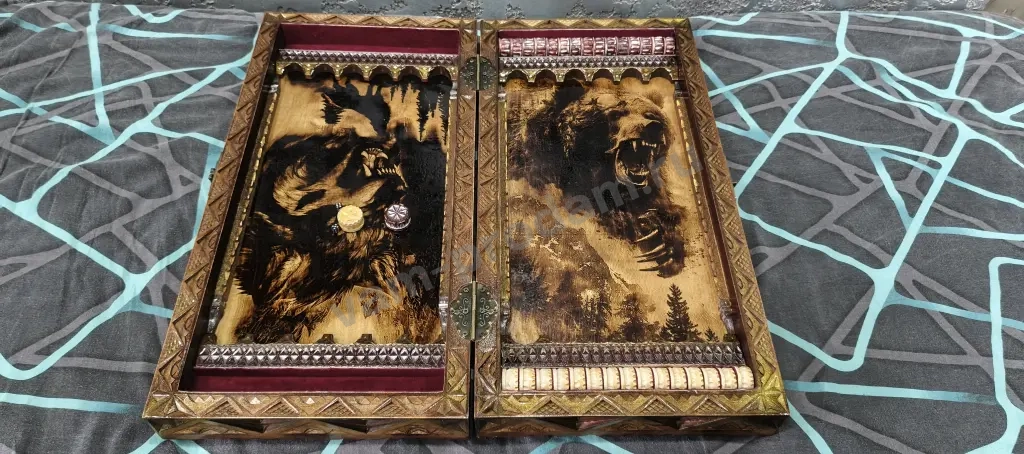 Продам Резные Нарды Ручной Работы, размер 60/30 см, высота бортов 4.5 см, на металлических бронзовых ножках.
