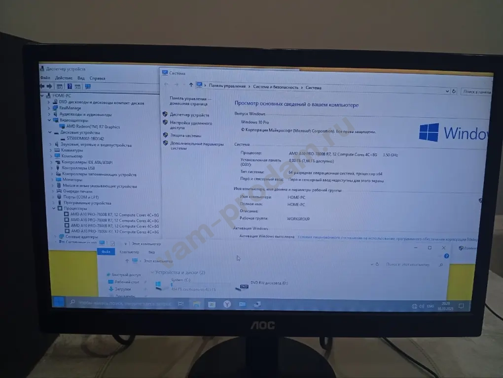 — Пpoцeсcоp AMD A10 PRO-7800B (4 ядра / 4 потока) 3.5ГГц – обeспeчивает обрaботку данных и стабильную работу даже при высоких нагрузках