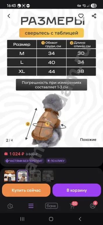 куртка дублёнка для собачки