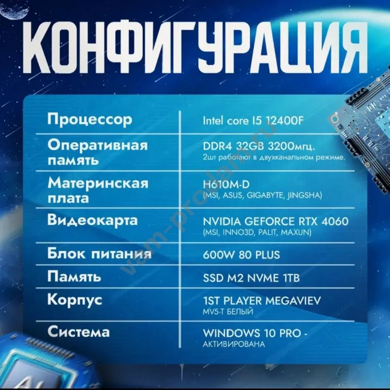 · Процессор Intel Core i5 12400F — 6 ядер / 12 потоков, до 4.4 ГГц