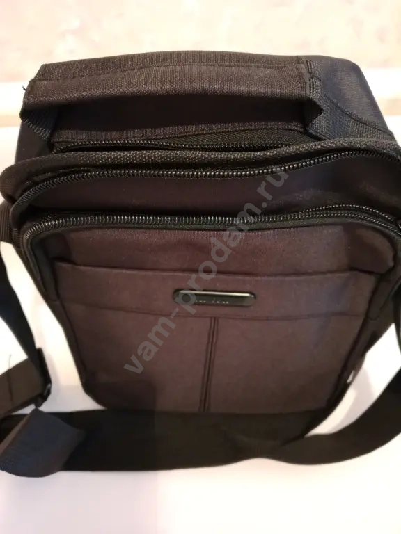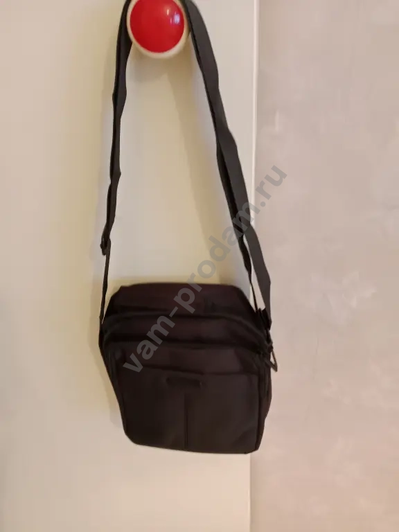 Мужская сумка через плечо из текстиля черного цвета. Размеры: высота — _23_ см; ширина — _18_ см; глубина — __ см. Прочный материал обеспечивает долговечность и надежность. Регулируемый ремень позволяет настроить удобную длину. В отличном состоянии.