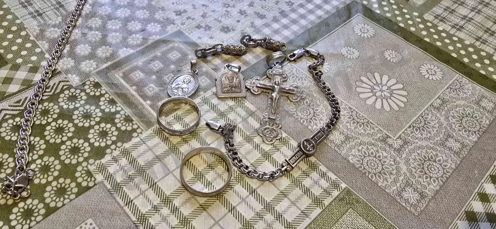 Здравствуйте выглядит всё супер, две цепи, один браслет, крест, иконки, и кольца всем хорошего просмотра