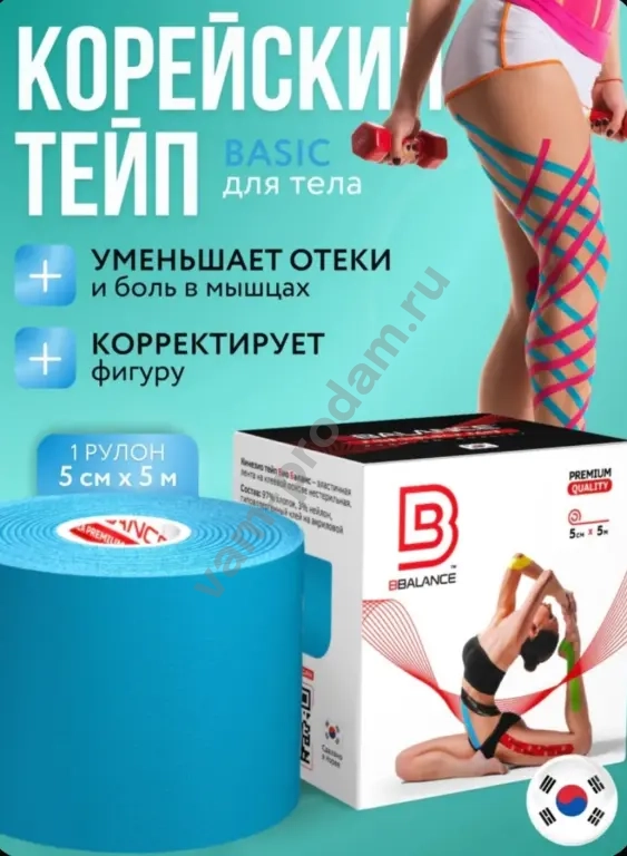 BBalance BASIC, кинезио тейп для тела. Уровень фиксации 4. Размер 5см*5м, цвет голубой.