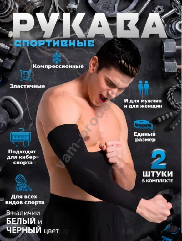 Рукава спортивные прямые черные, митенки, компрессионные нарукавники для киберспорта, волейбола, футбола, баскетбола, бега, защита от солнца.