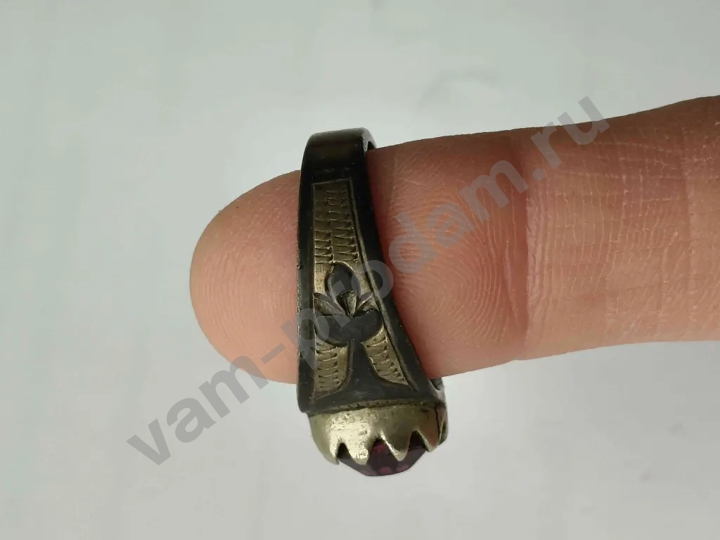 Размер 20. Ручная работа. Материал, предположительно, латунь, камень - неизвестно. 1,5 г. серебра в подарок.