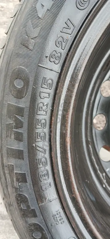 на 90 % новая резина Р15 ханкок оптимя надета на штампованом диске от Шевроле авео